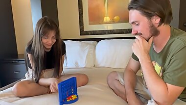 "Connect 4 strip game with a hot young brunette"